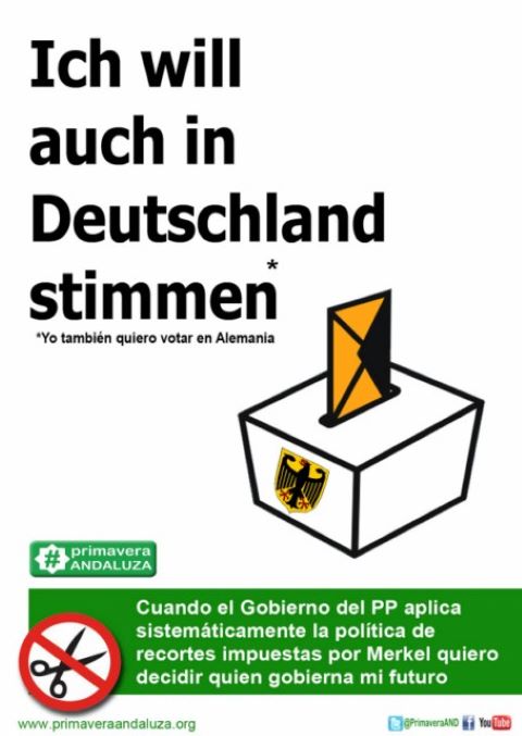 Todo el sur debería votar en Alemania para echar a Merkel (CDU) y darle una lección ética al SPD y Die Grünen. Como no va a ser, lo haremos en la Europeas de 2014 para construir un Parlamento Europeo con iniciativa política de izquierdas que advierta al gobierno Alemán que aquí sólo sobran sus políticas asesinas.
