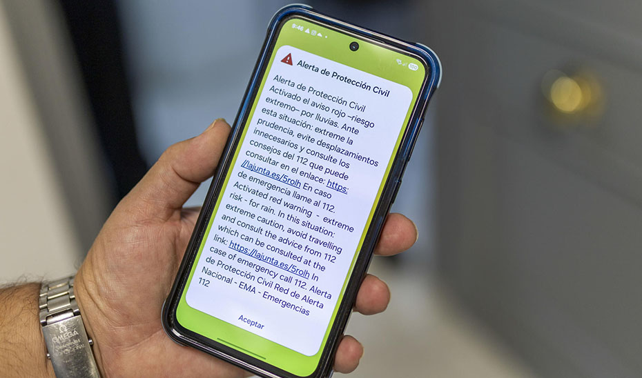 La Consejería ha enviado un mensaje Es-Alert a todos los vecinos del litoral de Huelva, así como a los de la zona del Andévalo y el Condado, comarcas que en estos momentos mantienen vigente el aviso rojo ante las fuertes precipitaciones. En el mensaje, emitido en español y en inglés, se informa de la activación del aviso rojo –riesgo extremo– por lluvias y se recomienda extremar la prudencia, evitar desplazamientos innecesarios y consultar los consejos del 112 accesibles en el enlace: https://lajunta.es/5rolh