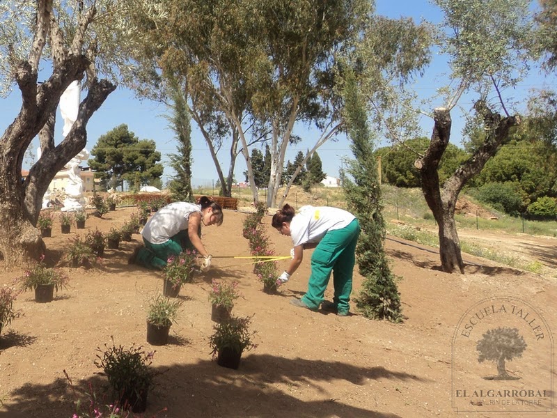 Durante el mes de mayo el alumnado de Jardinería está procediendo a la plantación de pacíficos en la zona anexa al parque El Algarrobal y al mantenimiento del césped, con siega, perfilado y riego. Por otro lado y ya dentro del perímetro del parque, están realizando las siguientes tareas: