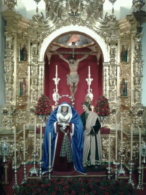 Para ello, la Capilla ha sido bellamente exornada por el grupo de Albacería, mostrando una estampa inédita cual es la «Sacra Conversación» entre la Virgen y San Juan Evangelista, los cuales están dispuestos abajo del retablo y con las indumentarias hebreas. Una elegante y bien cuidada profusión de flores rojas y cirios blancos rematan el montaje del culto.