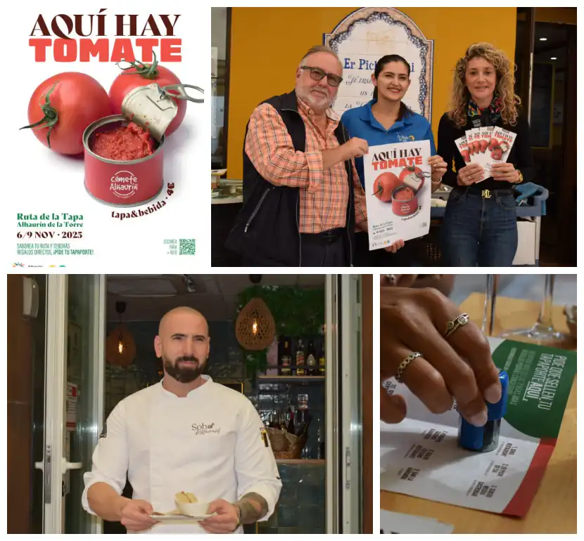 Llega a Alhaurín de la Torre la tercera edición de la ‘Ruta de la Tapa’, concretamente del jueves 6 al domingo 9 de noviembre, con el tomate como ingrediente principal o de acompañante destacado de las recetas. No en vano, el lema elegido para la campaña de este año es ‘Aquí hay tomate’. La iniciativa fue presentada el pasado viernes por el alcalde, Joaquín Villanova; la concejala de Comercio como entidad organizadora, María del Mar Martínez, y las técnicas del área, que visitaron dos de los restaurantes participantes, Soho y Er Pichi de Cai.