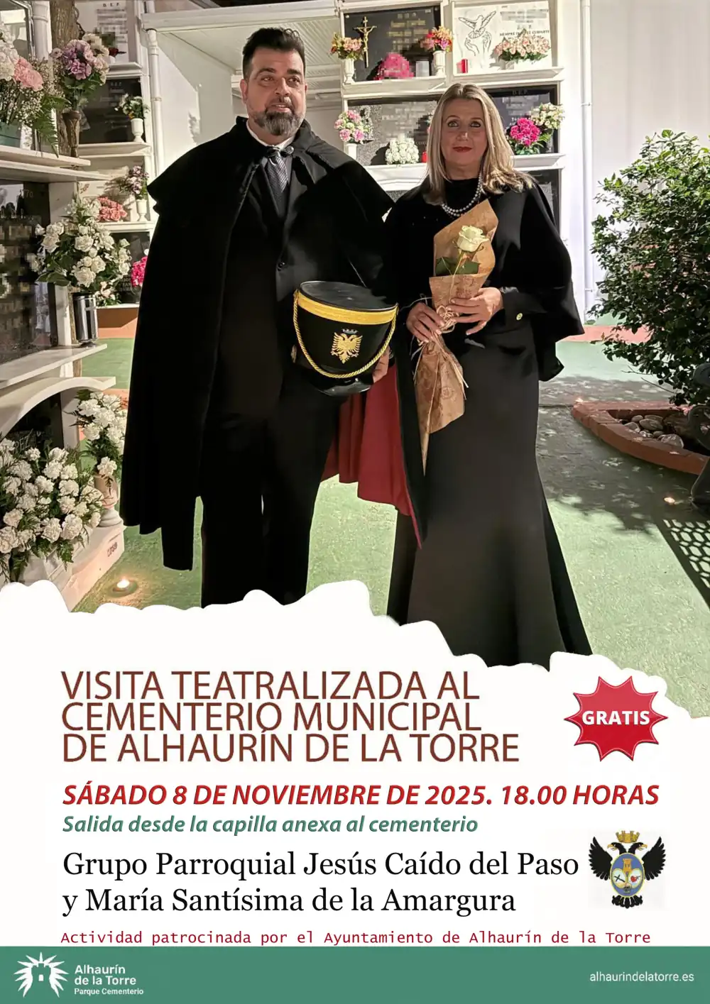 La visita hará un recorrido original y único por el cementerio de Alhaurín de la Torre, uno de los más antiguos de la provincia de Málaga, fundado en 1804. Tras una breve introducción en la capilla anexa al cementerio, los asistentes seguirán un recorrido por distintos puntos donde les esperarán actores que encarnarán a personajes o situaciones relacionadas con personalidades allí enterradas.